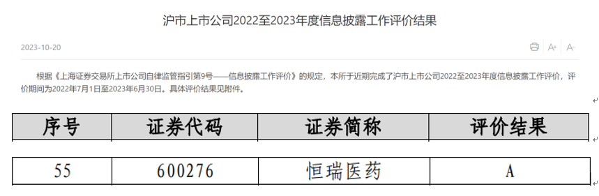 近日,上海交易所公布了沪市上市公司2022-2023年度信息披露工作评价结果,凭借在信息披露、规范运作以及投资者关系管理等方面的优秀表现,AG视讯医药获评A级。本次共有2160家沪市上市公司参评(包括499家科创板上市公司),评价等级从高到低依次为A、B、C、D四类,获得A类评价的上市公司占比约18.5%。