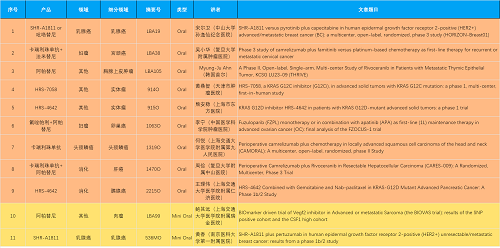15款创新药包括10款已上市产品:注射用瑞康曲妥珠单抗(艾维达®,研发代号:SHR-A1811)、注射用卡瑞利珠单抗(艾瑞卡®)、苹果酸法米替尼胶囊(艾比特®)、甲磺酸阿帕替尼片(艾坦®)、马来酸吡咯替尼片(艾瑞妮®)、阿得贝利单抗注射液(艾瑞利®)、羟乙磺酸达尔西利片(艾瑞康®)、氟唑帕利胶囊(艾瑞颐®)、瑞维鲁胺片(艾瑞恩®)、海曲泊帕乙醇胺片(恒曲®),以及5款未上市产品,包括KRASG12C抑制剂HRS-7058、KRASG12D抑制剂HRS-4642、选择性的AR-PROTAC(雄激素受体-蛋白降解靶向嵌合体)小分子HRS-5041、抗PD-L1/TGF-βRII双抗瑞拉芙普-α注射液(SHR-1701)、Trop-2 ADC SHR-A1921。2类新药盐酸伊立替康脂质体注射液(II)(越优力®)及国内首仿药昂丹司琼口溶膜(艾其速®)各有1项研究入选。本文特对研究成果做了梳理,带领各位读者领略AG视讯医药创新之光。